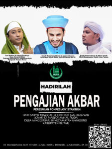 Dalam rangka peresmian Pondok Pesantren Asy Syakiriin Desa Minggirsari Kecamatan Kanigoro Kabupaten Blitar Yayasan Alhuda Hanifa Indonesia akan menggelar acara Pengajian Akbar menghadirkan 3 Tokoh Internasional antara Lain
