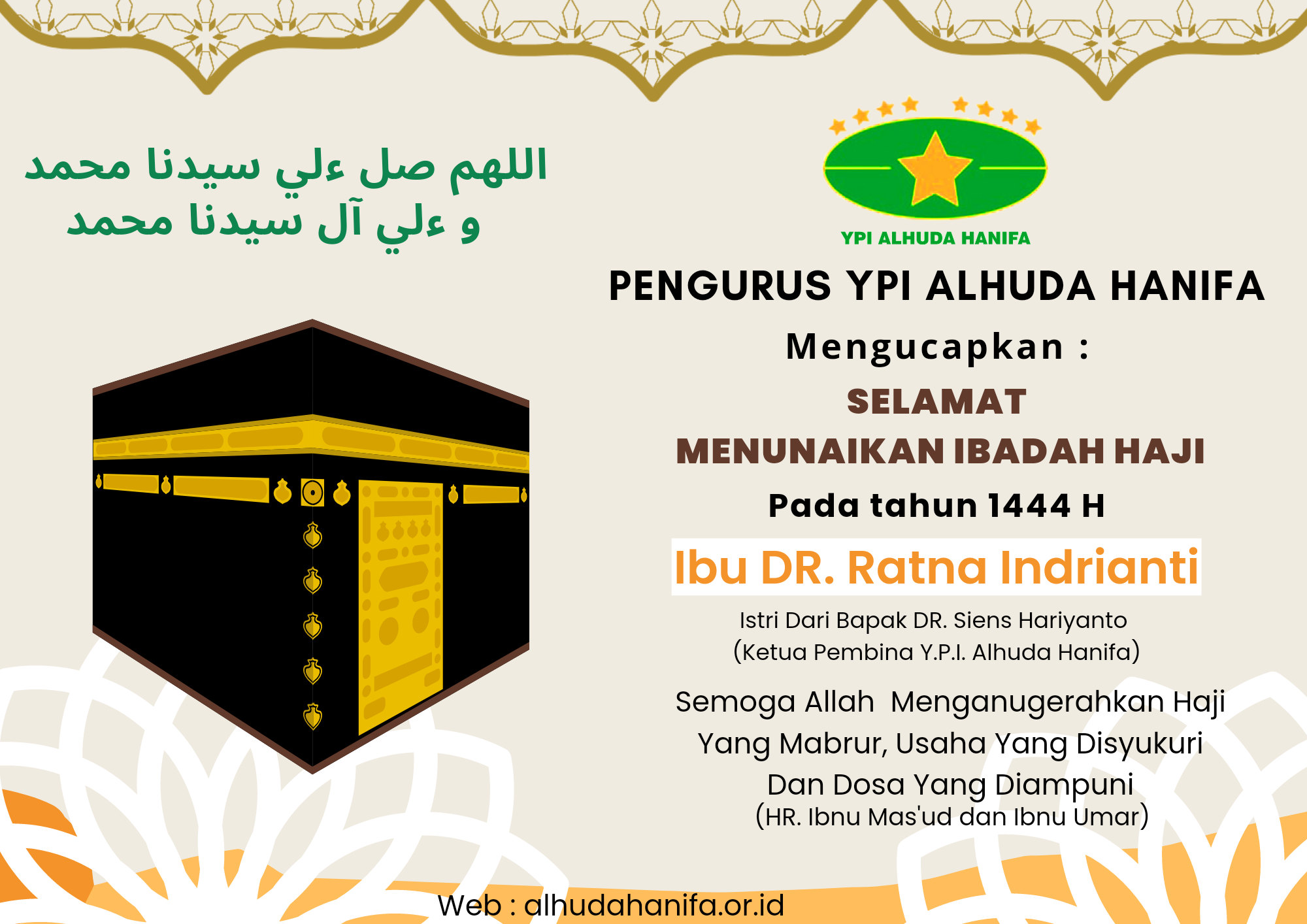 Kami dari Pengurus YPI ALHUDA HANIFA Menyampaikan selamat menunaikan Ibadah Haji :
